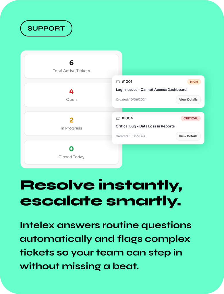 From answering questions to flagging leads and updating CRMs, Intelex handles what your team doesn’t have time for.